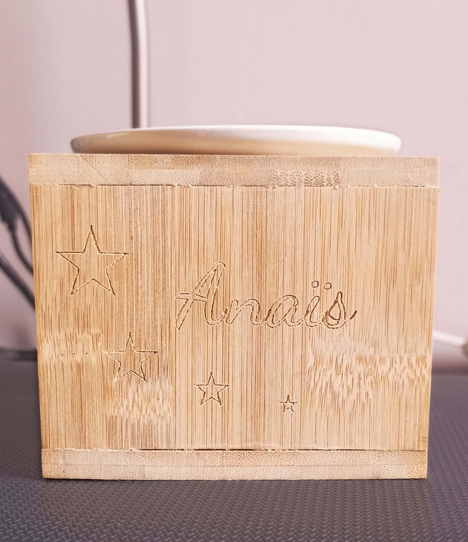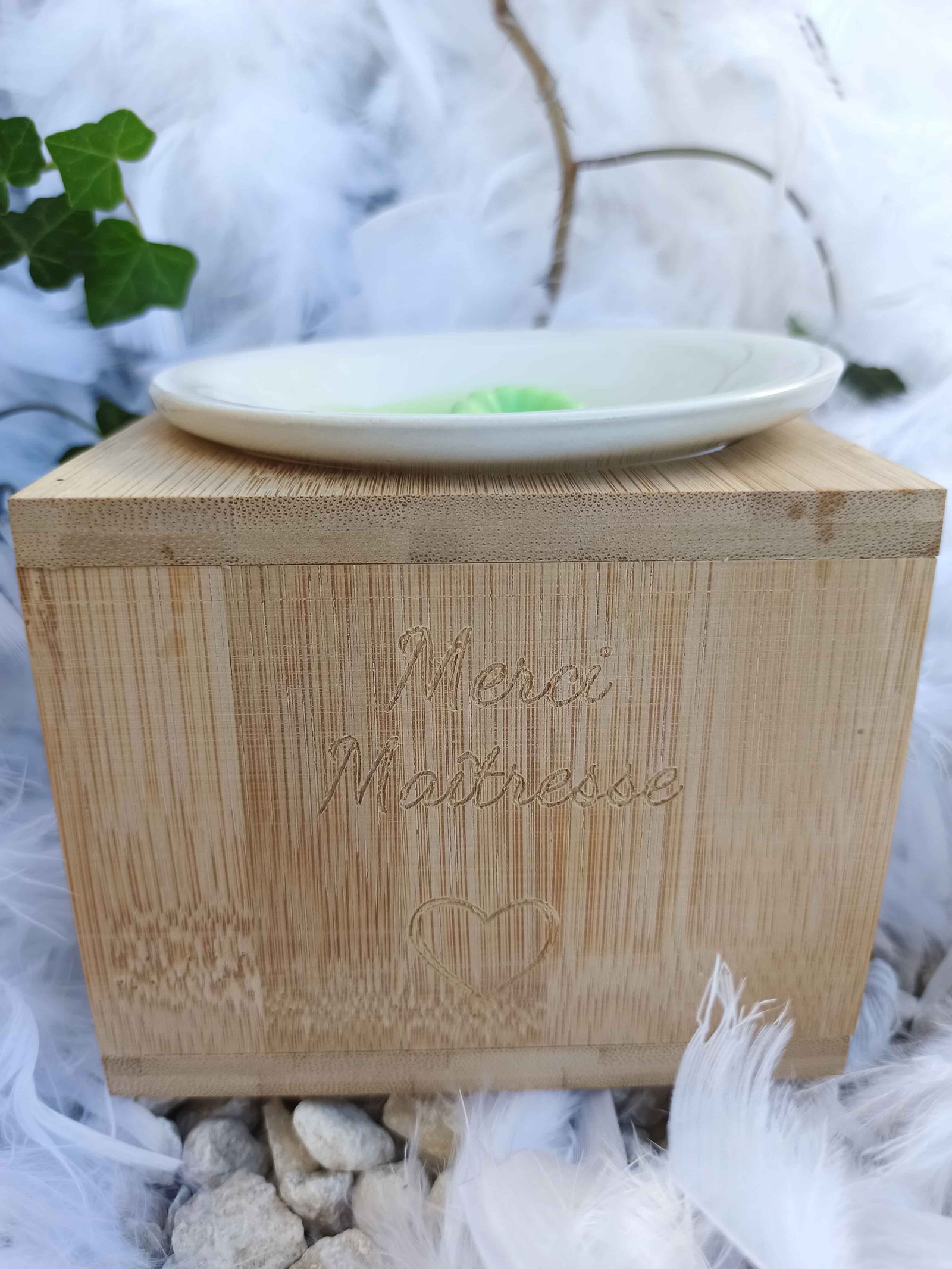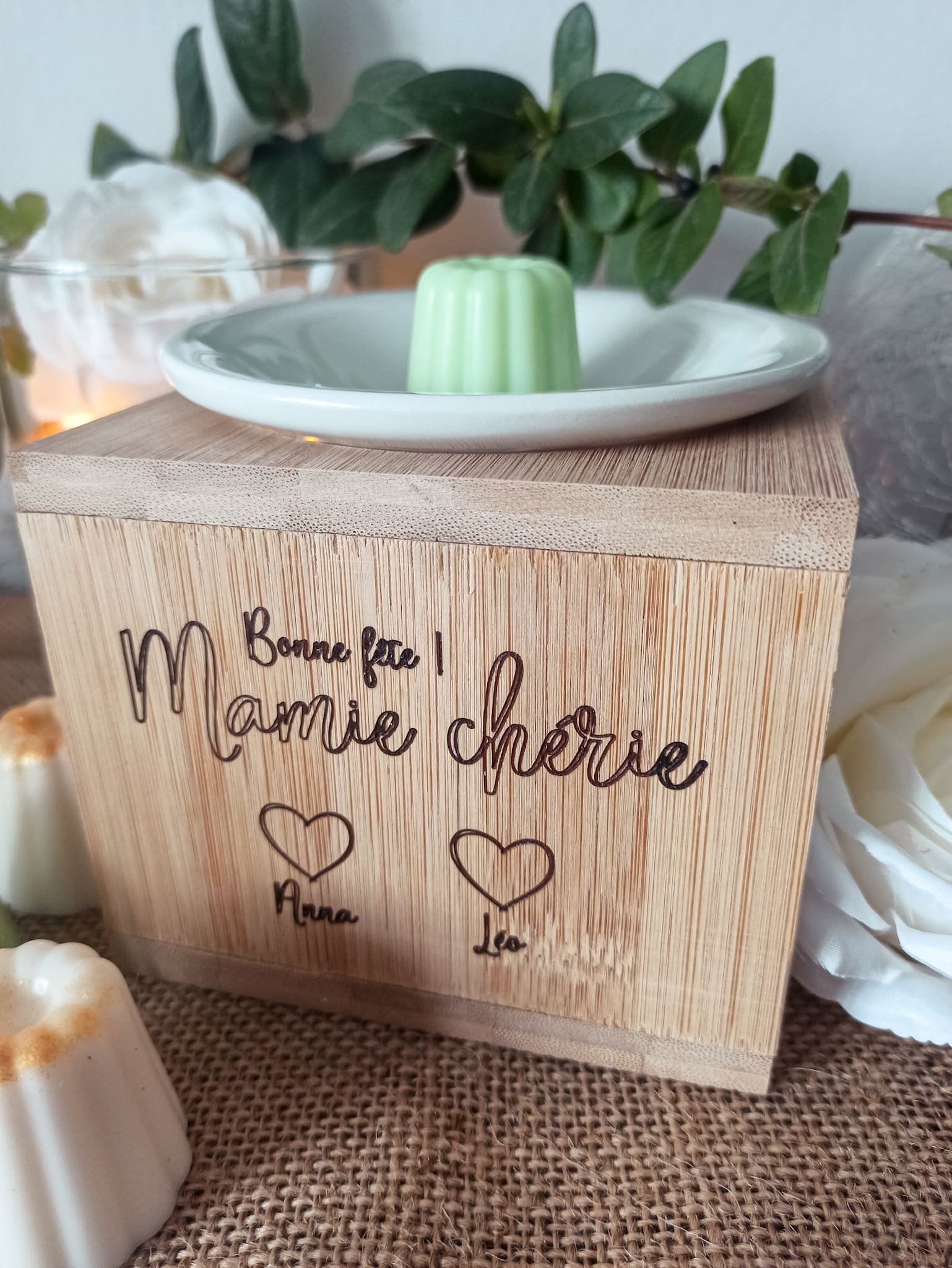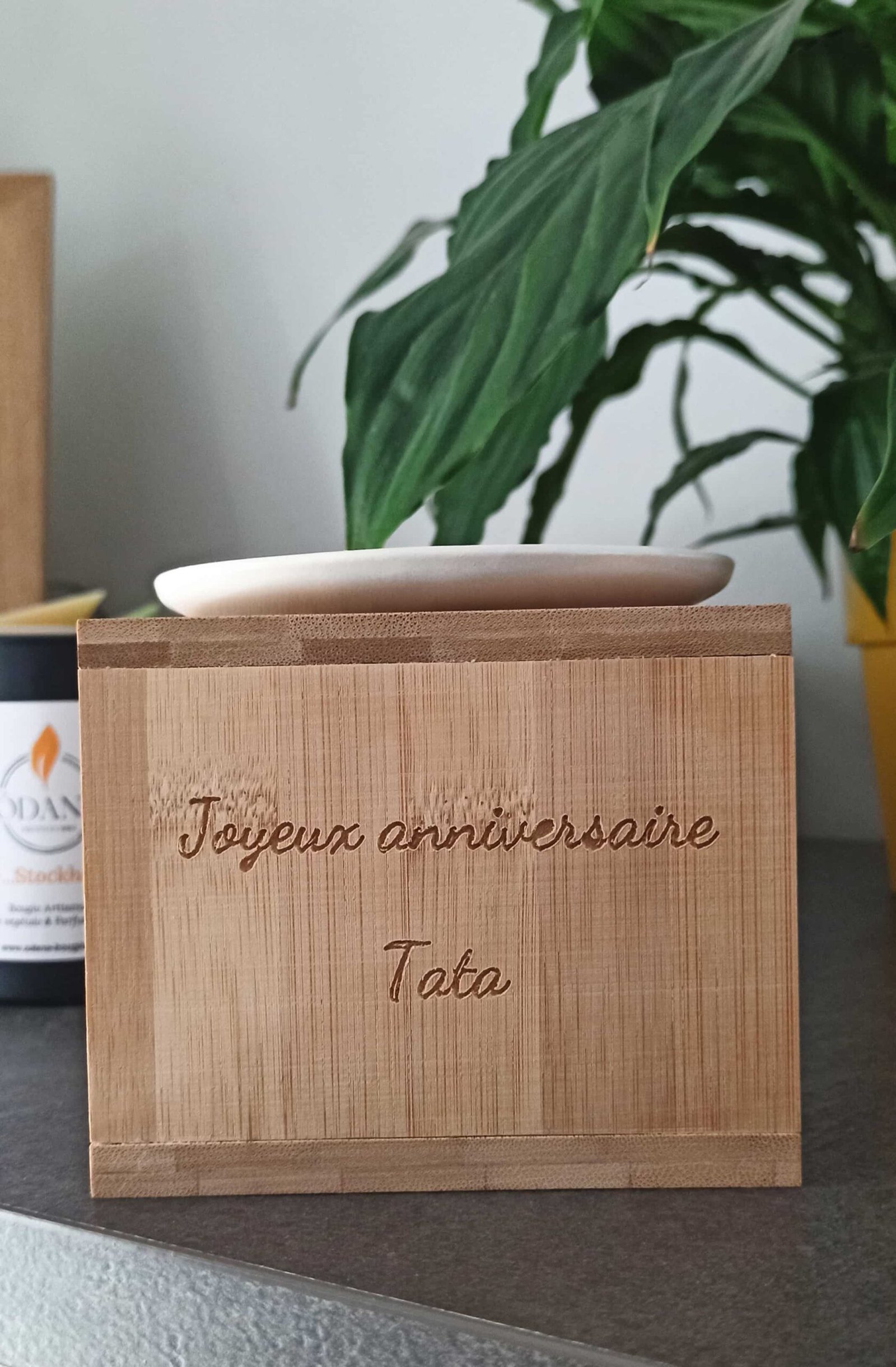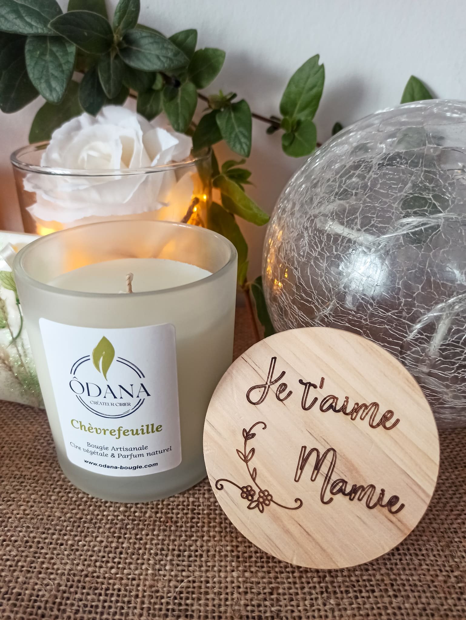 Tous les pots de bougies ont un couvercle en bois offrant la possibilité d’une gravure personnalisée