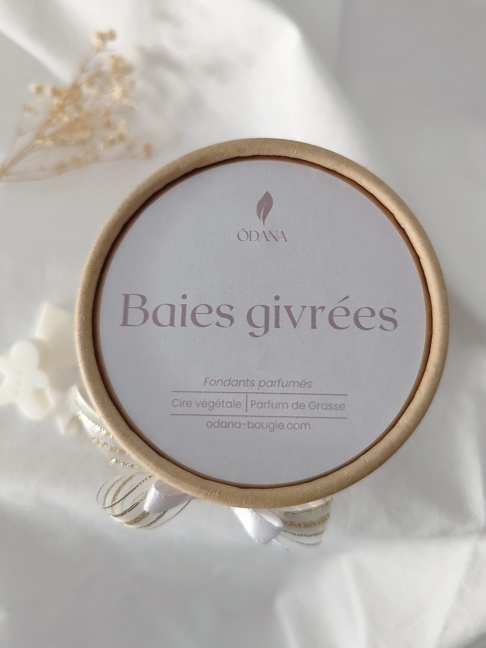 Mini fondants parfumés Baies Givrées : une senteur fraîche et fruitée aux notes de fruits rouges givrés, idéale pour créer une ambiance chaleureuse et festive.