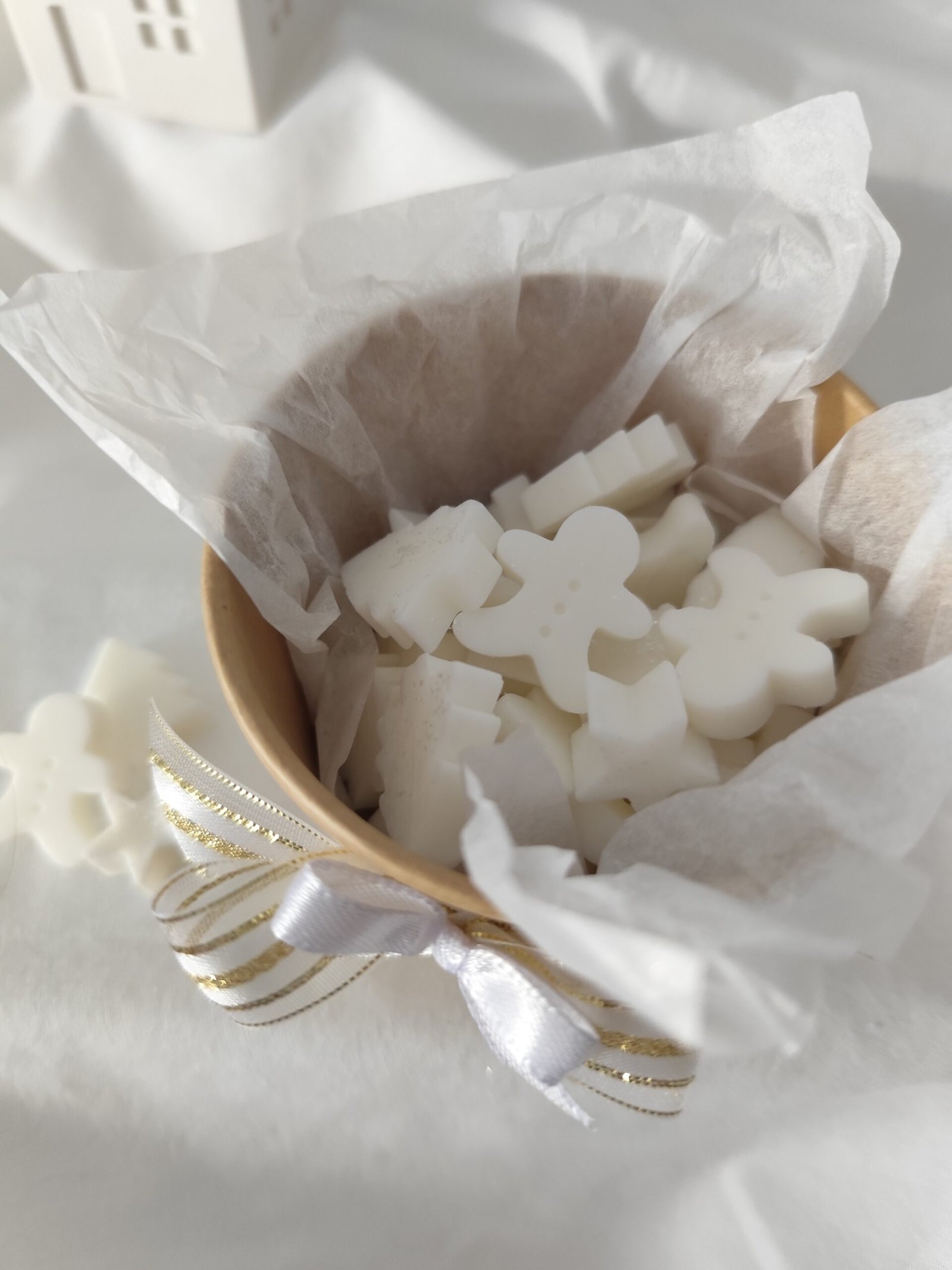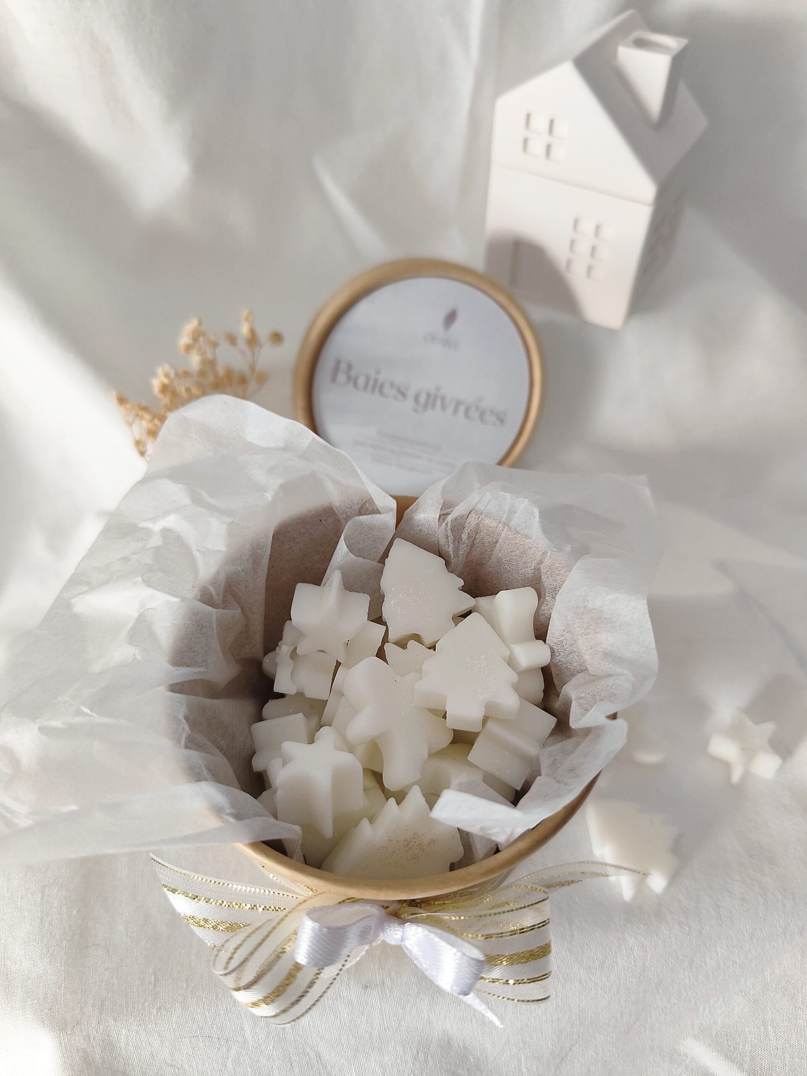 Découvrez les mini fondants parfumés de Noël Baies Givrées, présentés dans une cup au design chic et festif. Leurs formes ludiques (sapins, étoiles et bonhommes pain d’épices) apportent une touche de magie à votre intérieur tout en diffusant un parfum délicatement parfumé au contact de la chaleur.